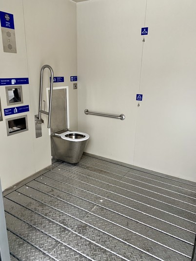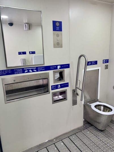 Функціонал туалету повністю автоматизований: відкриття дверей, вентиляція і, за потреби, підігрів/охолодження повітря, миття, дезінфекція і сушка унітазу, подача туалетного паперу, мила та води для рук, безконтактна сушка рук, миття і дезінфекція підлоги після кожного відвідувача, датчик присутності, антикорозійний і антивандальний захист. На вході встановлено автоматичну систему оплати, яка прийматиме банківські картки.