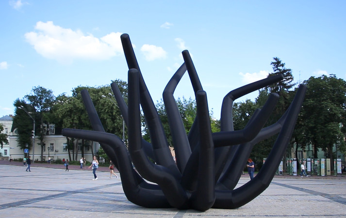 На Михайлівській площі у Києві встановили п’ятиметрову надувну скульптуру. Арт-об’єкт у вигляді щупалець відкрили у Міжнародний день на підтримку жертв катувань - 26 червня. Про це повідомляє Центр інформації про права людини.