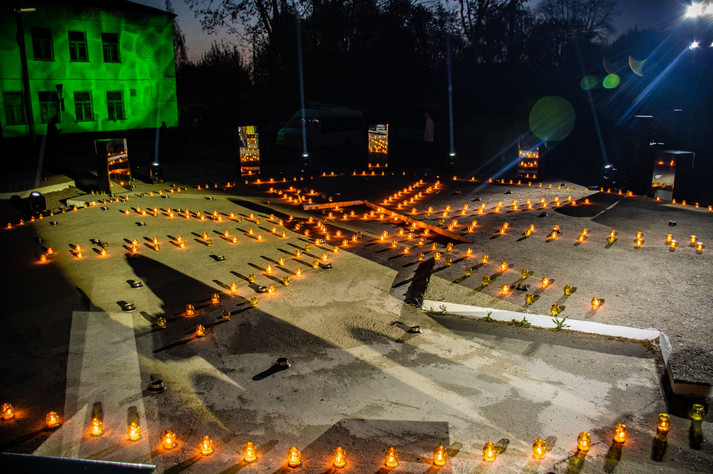 У центрі міста на імпровізованій сцені сотні запалених свічок розставили в формі сонячного годинника. Там і виступили Руслана з хлопцями.