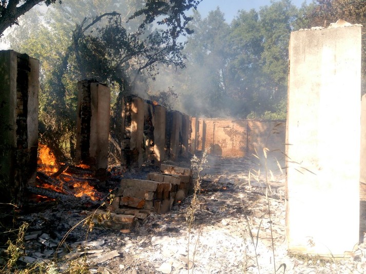 Горів трав`яний настил та напівзруйнована господарча будівля
