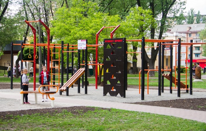 Окрім того, встановлено спортивний і дитячий майданчики з новими екологічними дерев’яними арт-об’єктами та додатковими розвиваючими елементами.