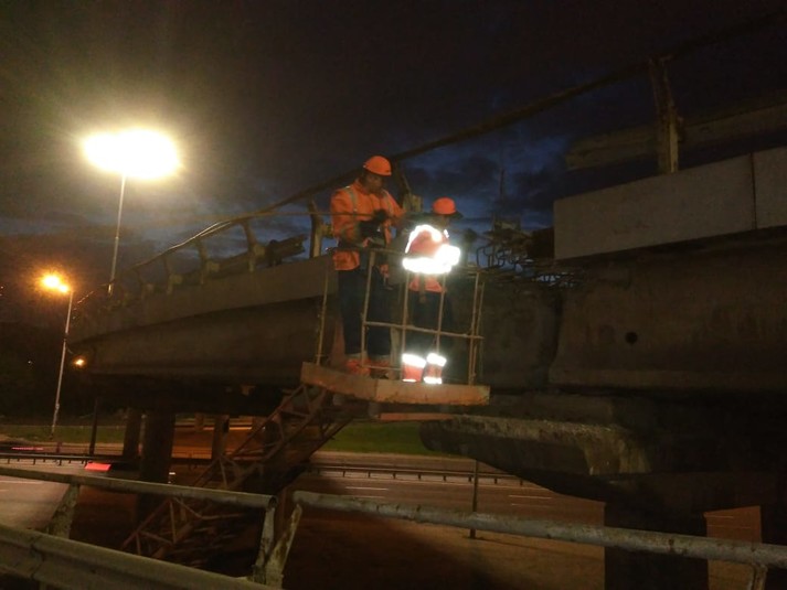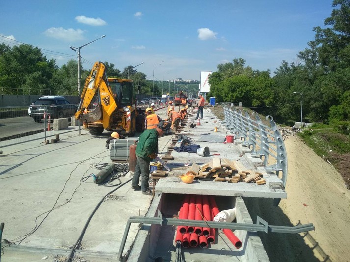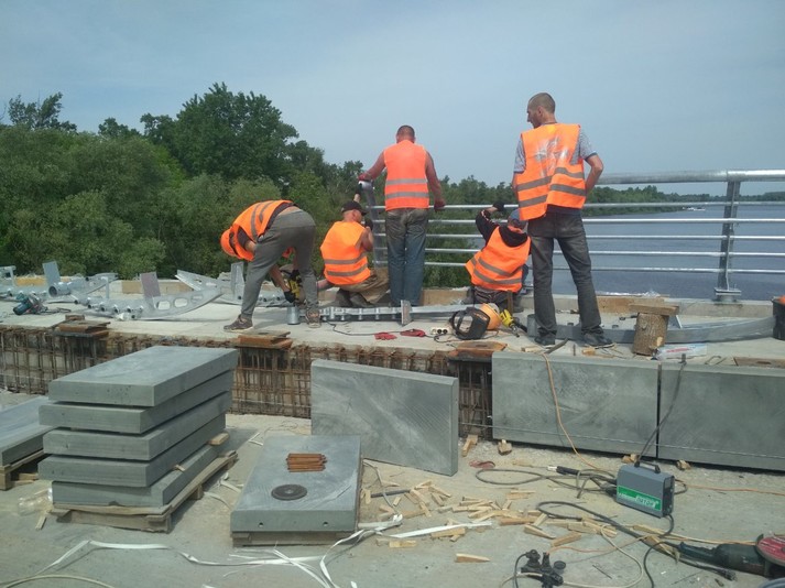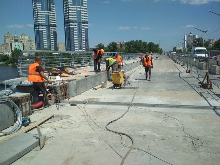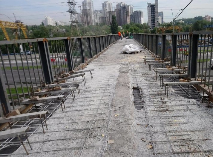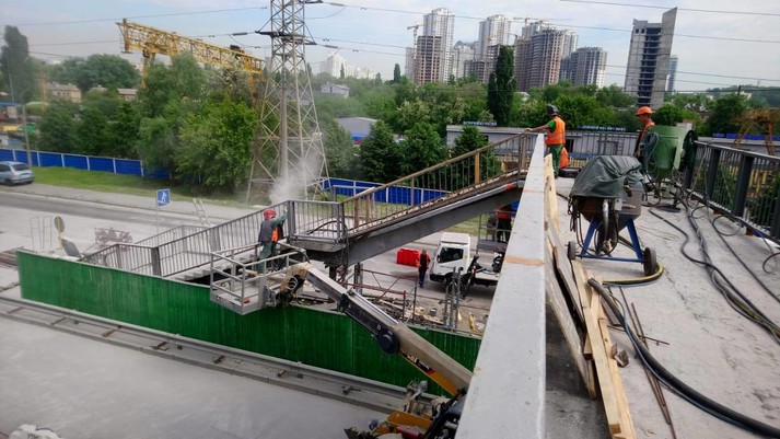 Також ремонті роботи тривають на пішохідному мосту на вул. Саперно-Слобідській та Борщагівській естакаді.