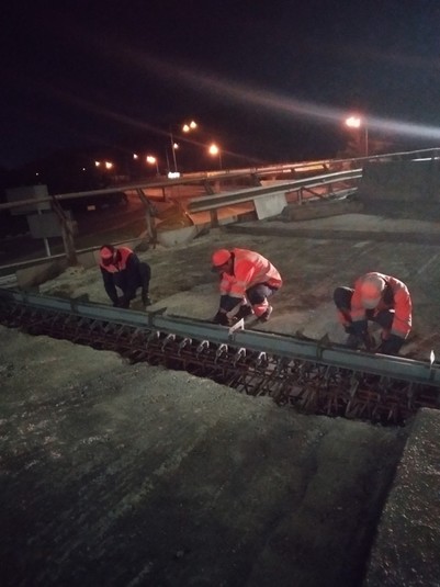 В рамках капітального ремонту 6-ти деформаційних швів на Південному мостовому переході автодорівці на вихідних, за сприятливих погодних умов, проводитимуть бетонування трьох деформаційних швів, на інших трьох – тривають підготовчі роботи до бетонування.