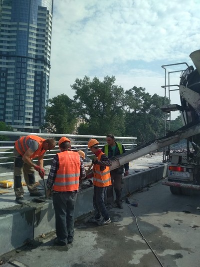 В рамках робіт з капітального ремонту мосту Метро через Русанівську протоку дорожники проводять ремонт тротуарної частини штучної споруди та ведуть підготовчі роботи до влаштування гідроізоляції проїжджої частини на трьох прогонах.
