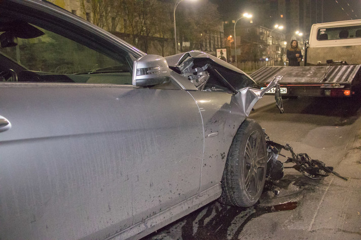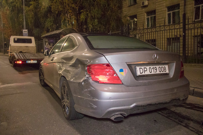 До слова, Mercedes ще до цієї аварії мав вм'ятину на лівому задньому крилі і пошкоджену задню фару.