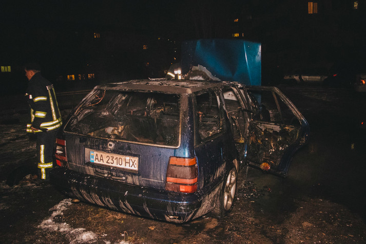 У ніч на п’ятницю, 8 лютого, в Києві за адресою Харківське шосе, 8 горіла машина. Автомобіль Lancia несподівано спалахнув вночі у дворі і в лічені хвилини вигорів.