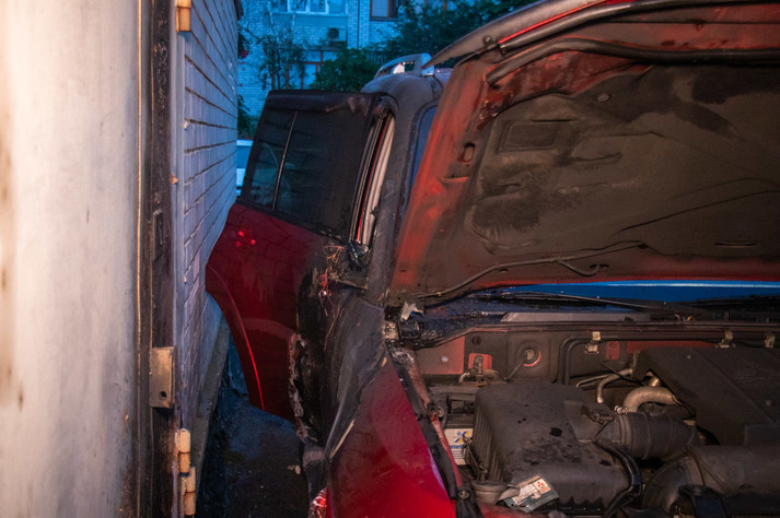 У дворі будинку на Троєщині горів позашляховик: підозрюють підпал (фото, відео)