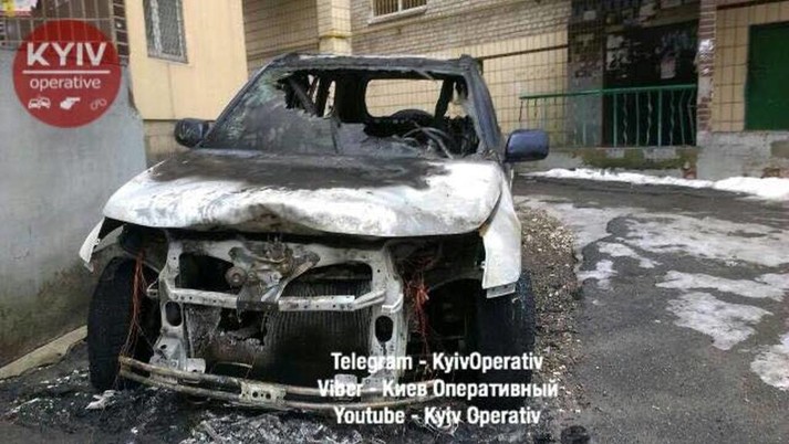 У дворі будинку в Києві вщент згорів автомобіль (фото)