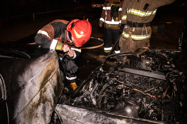 У ніч на вівторок, 19 березня, на вулиці Мілютенка, 15 в Києві сталася пожежа: загорівся автомобіль BMW 5, вогонь з нього перекинувся на сусідній BMW 3.