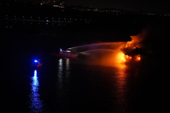 У Гідропарку горів ресторан на воді. До гасіння залучалися спецкатери (фото, відео)
