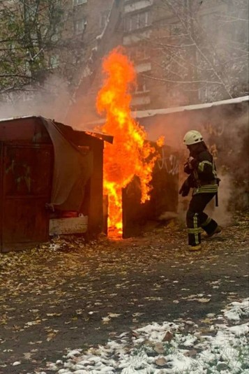 У середу, 18 листопада, сталася пожежа у металевому гаражі, що знаходиться у дворі 8-поверхового будинку на проспекті Голосіївському, 112. Інформація про загорання надійшла до Служби порятунку «101» о 14:19, повідомляє пресслужба Головного управління ДСНС у Києві.