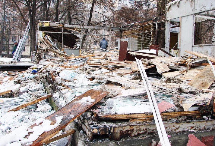 Працівники комунального підприємства «Київблагоустрій» демонтували на вул. Лятошинського, 4 у Голосіївському районі тимчасову споруду площею 170 кв. м. Про це повідомив на своїй сторінці у Facebook в.о. директора КП «Київблагоустрій» Андрій Андрєєв.