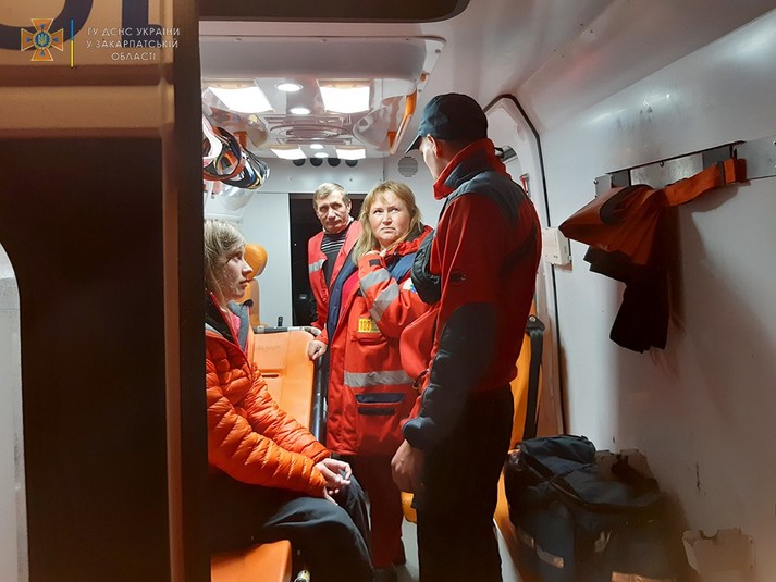 Для допомоги дівчині на місце події вирушили фахівці гірського пошуково-рятувального відділення с. Кваси. Вони відшукали туристку, в якої виявився дуже високий тиск. Тож їй зробили необхідний укол і на ношах перенесли до рятувального автомобіля, на якому транспортували до присілку Кевелів смт Ясіня й передали в руки лікарів бригади екстреної медичної допомоги для подальшої госпіталізації», – зазначається у повідомленні.