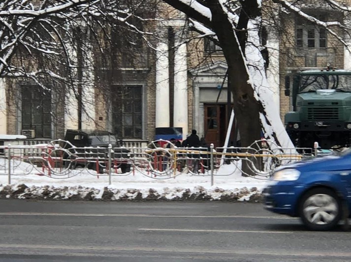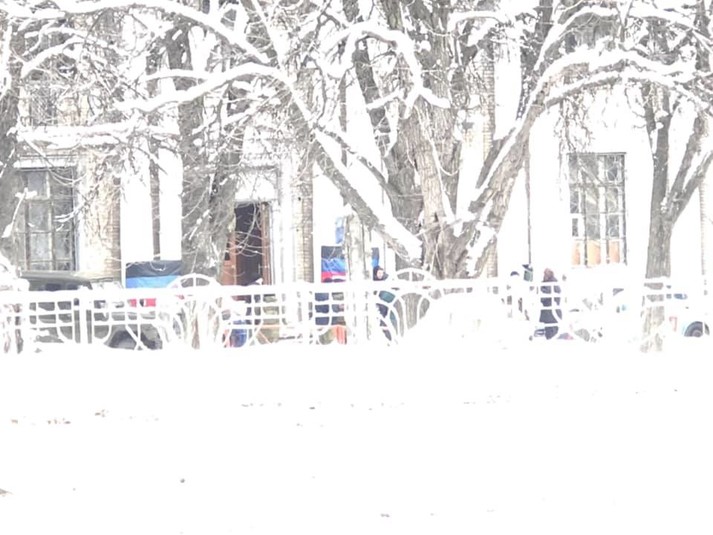 Сьогодні, 15 січня, біля будівлі на проспекті Валерія Лобановського, 115 були помічені люди з автоматами, а перед входом вивішені два прапори «ДНР».