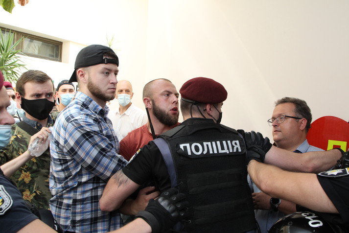 У Києві агресивні молодики намагалися зірвати конкурс на визначення маршрутних перевізників (фото, відео)