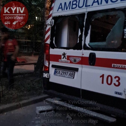 Судячи з фото з місця подій, чоловік побив на автомобілі швидкої скло