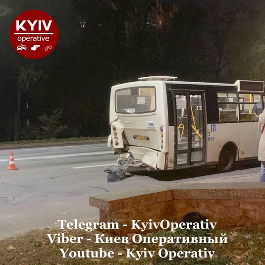 У суботу, 16 жовтня, у Києві на Харківському шосе на великій швидкості водій легковика влетів у задню частину маршрутки. Про це повідомили очевидці у Telegram-каналі «Київ оперативний».