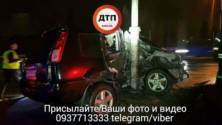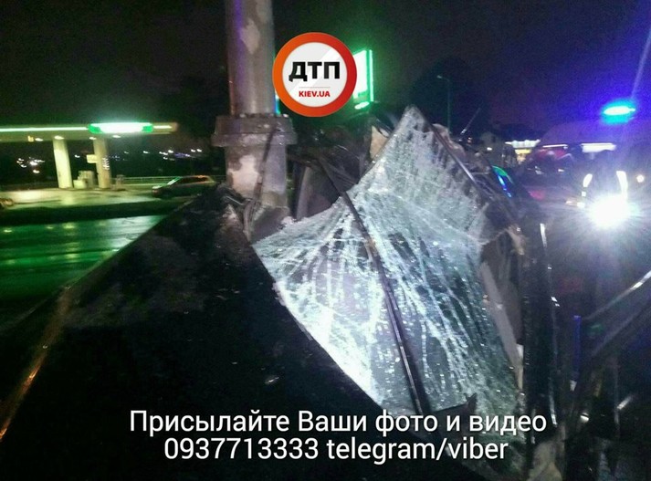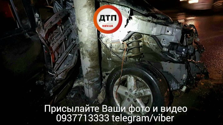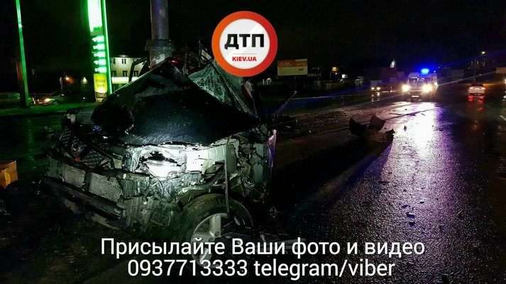 У Києві авто на швидкості врізалося у стовп: є потерпілі