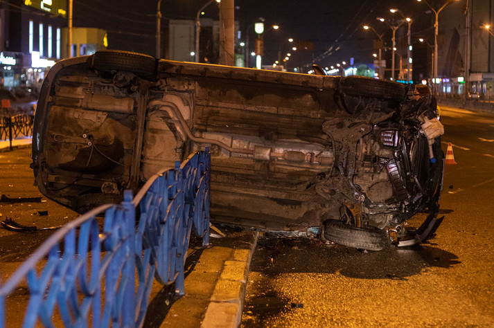 За словами водія Hyundai, він рухався з дозволеною швидкістю по проспекту Степана Бандери з боку Куренівки. Перед ним їхав автомобіль, який різко загальмував. Чоловік за кермом Accent, щоб не влетіти в нього, також загальмував, але на мокрій дорозі його занесло. Машина вилетіла з дороги, знесла близько 15 метрів залізної огорожі і зупинилася на боці.