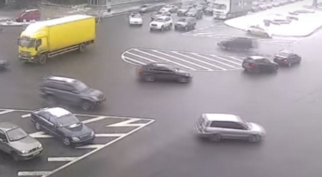 Як видно на відео ДТП на площі Перемоги відбулося за типовим для цього місця сценарієм.
