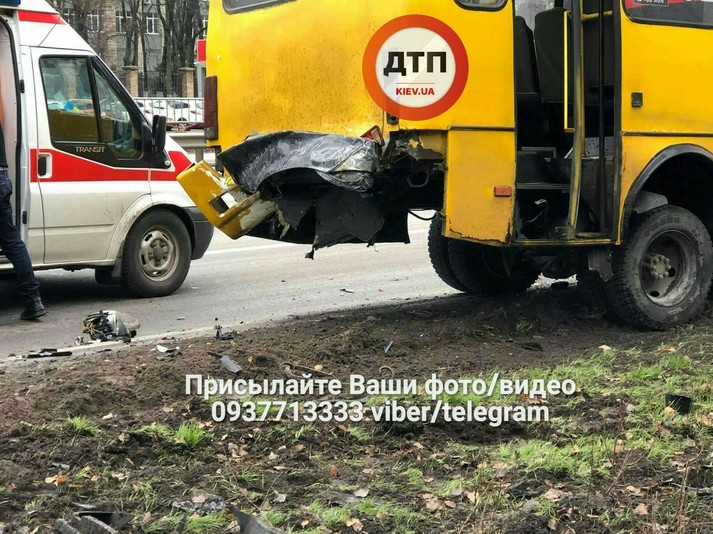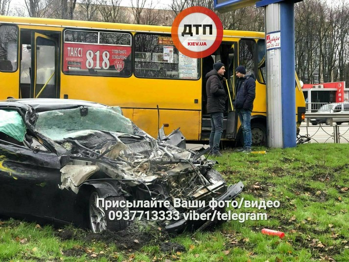 У Києві BMW протаранила маршрутку, яку від удару жбурнуло у стовп