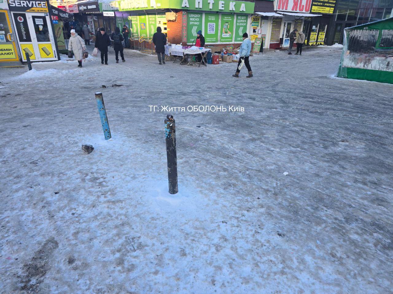 Повідомляється, що на «Героїв Дніпра» слизькі ділянки зафіксовані біля входів до метро через ТЦ «Оазис» та довкола ринку. «Життя Оболоні» повідомляє, що днями біля одного з виходів зі станції метро «Оболонь» чоловік упав на слизькому тротуарі, сильно травмувався та втратив свідомість. На місце викликали швидку допомогу. Про подальший стан постраждалого інформації немає. Також паблік оприлюднив фото, на яких підходи до ринку нагадують ковзанку.