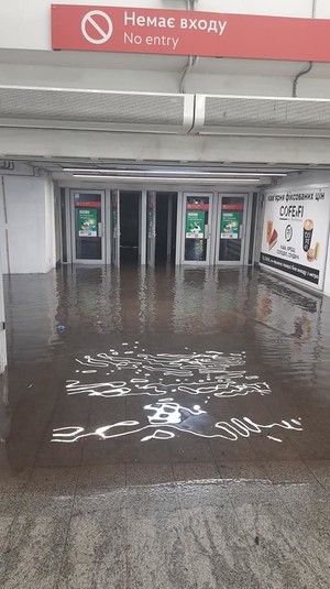 «Щоб уникнути підтоплення через негоду перший вестибюль станції Героїв Дніпра закритий на вхід і вихід. Про відновлення роботи станції у звичайному режимі буде повідомлено додатково», – йдеться в повідомленні.