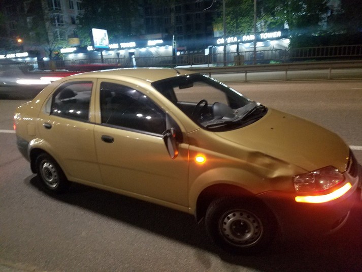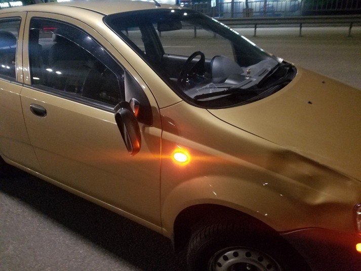Перші чотири автосмуги та відбійник чоловік подолав вдало, а от на іншій стороні проспекту чоловік потрапив на капот «Шевроле».