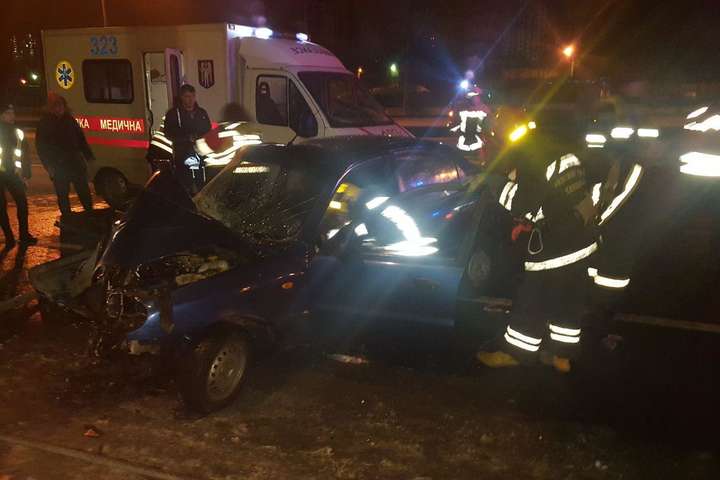 У Києві Daewoo на швидкості влетіло у залізний стовп: двоє постраждалих