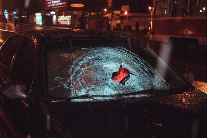 Від зіткнення з машиною потерпілий спочатку вилетів на передній бампер автомобіля. Він розбив тілом лобове скло, після чого опинився на даху. Від несподіванки власник авто не відразу зрозумів, що сталося, і ще близько 30 метрів провіз збитого на даху.