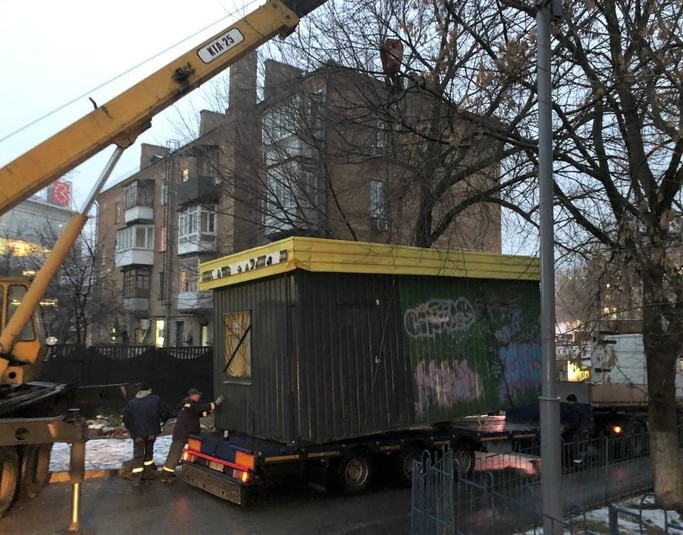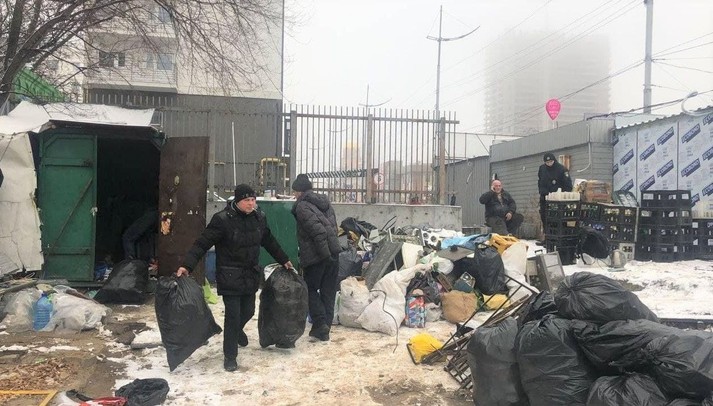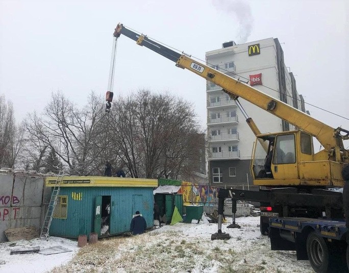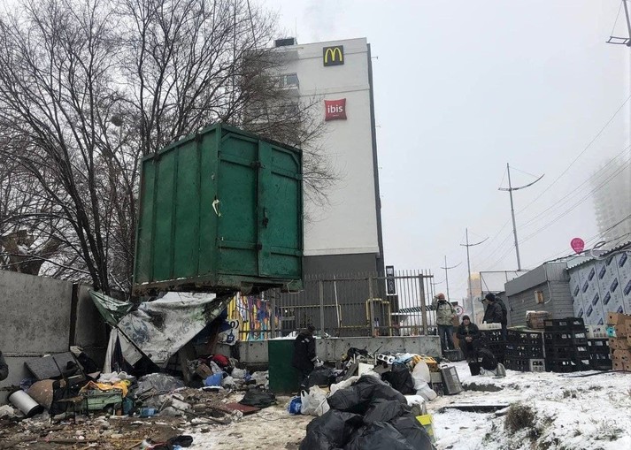 «Пункт на Ползунова знаходився неподалік Центрального залізничного вокзалу. Там люди з асоціальною поведінкою облаштували звалище сміття. Розпочали демонтаж наші фахівці не одразу: невідомі особи забарикадувались всередині, чинили супротив. Змогли виконати законні вимоги завдяки співробітникам Нацполіції. До речі, їм велика подяка, що завжди допомагають нам проводити демонтаж незаконних споруд без ускладнень», – розповів в. о. директора КП «Київблагоустрій» Микола Бойко.