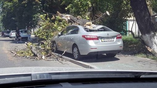 У Шевченківському районі на вулиці Тарасівська дерево звалилося на машину, яка була припаркована на тротуарі.