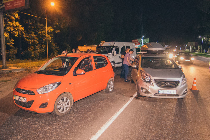 У четвер, 17 травня, на Софіївській Борщагівці неабияк п'яний водій буса Opel Movano влетів в автомобілі, що стояли на світлофорі.