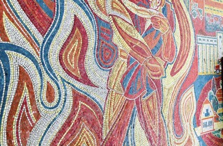 Мозаїка оспівувала героїзм пожежників, які щоденно ризикують своїм життям, рятуючи життя інших.