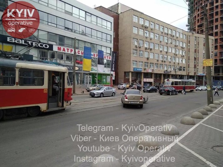 «З 09:30 затримується рух трамваїв №14,18 на вул. Глибочицька/Соляна в обох напрямках з причини ДТП між приватними авто СА1716ТН, АА9223РЕ. На місце викликано поліцію», - повідомила пресслужба КП «Київпастранс».