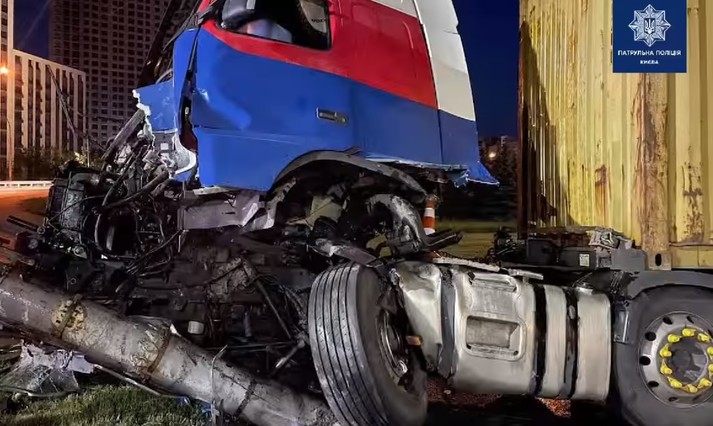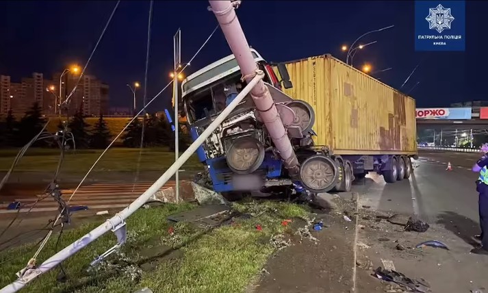 У Києві фура знесла електроопору: відео моменту ДТП