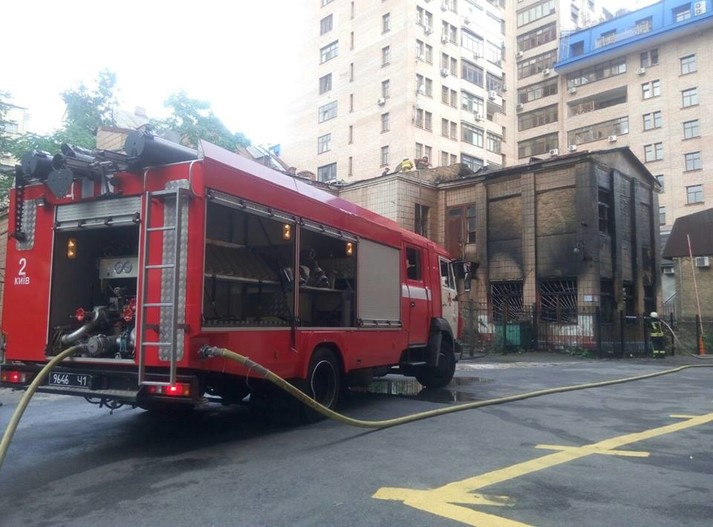 У Києві на вулиці Дмитрівській сталася пожежа у відселеній будівлі дитячого садка.