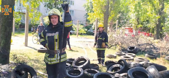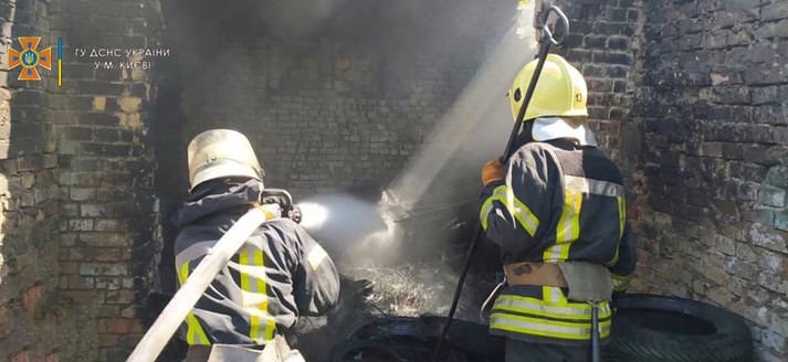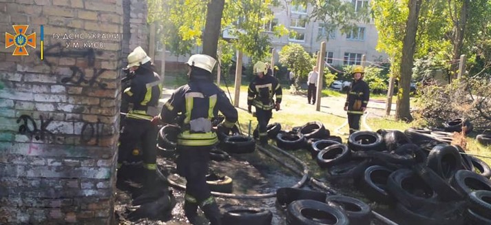 13 липня на відкритій території на вул. Березняківській, 30-А у Дніпровському районі столиці горіло звалище автомобільних шин.