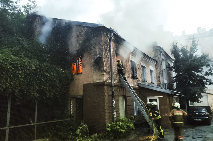 Вранці 25 червня в центрі Києва за адресою вулиця Рейтарська, 9 сталася пожежа: горіла двоповерхова будівля старої споруди, в якій знаходяться офісні приміщення.