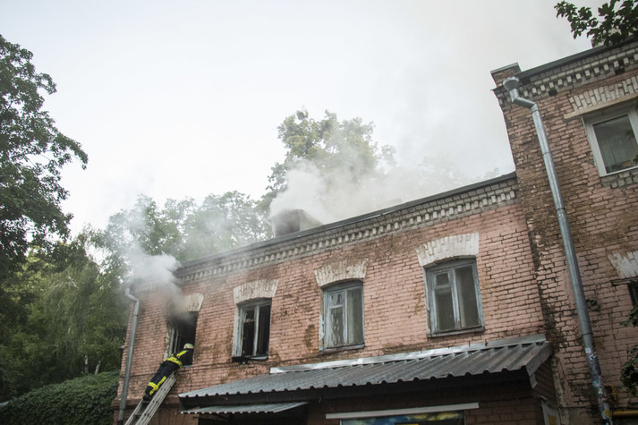 У центрі Києва горів двоповерховий старий будинок (фото, відео)
