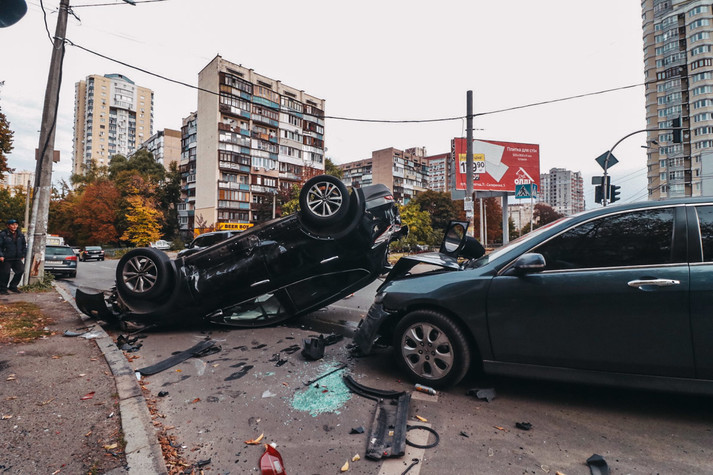У Києві Hyundai зніс світлофор і перекинувся (фото, відео)
