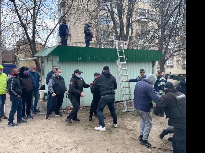 У Києві комунальники прибрали МАФ-«наливайку». Без бійки не обійшлося (фото)