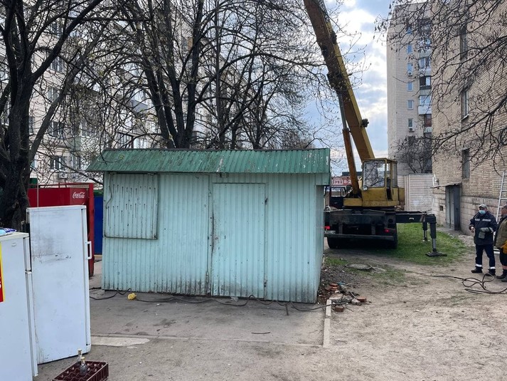 У середу, 21 квітня, комунальники демонтували тимчасову споруду на вулиці Академіка Заболотного в Голосіївському районі Києва. Споруда не мала дозвільних документів на розміщення. Про це повідомив в.о. директора комунального підприємства «Київблагоустрій» Микола Бойко на своїй сторінці у Facebook.