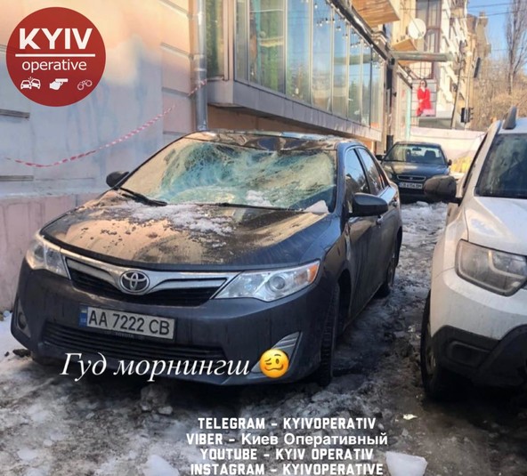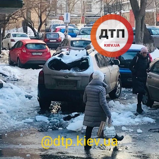 Так, жертвами бурульок і снігових глиб у столиці вже стали декілька автомобілів. Фото пошкоджених автівок з’явилися у соцмережі.