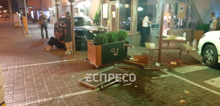 Зазначається, що автомобіль зніс столик з дороги. Журналісти дізналися, що двох людей госпіталізували з травмами різного ступеня тяжкості.