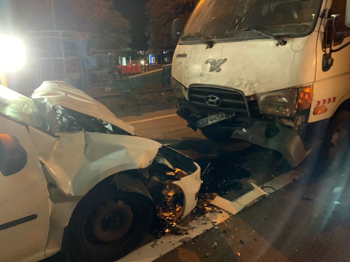 У ніч на понеділок, 7 вересня, на Броварському проспекті легковик протаранив автомобіль комунальників, які ремонтували надземний перехід. ДТП сталося у напрямку Броварів, неподалік птахофабрики. Легковий автомобіль Renault влетів у машину Hyundai з підйомником, повідомляє «Магнолія-ТВ».