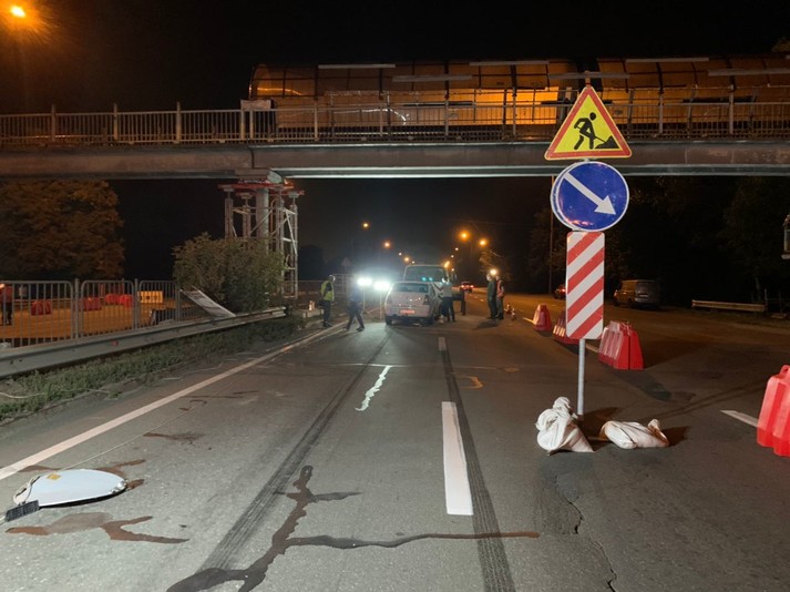 Підрядна організація займалася ремонтом надземного пішохідного переходу. В момент зіткнення нікого з робочих не було біля машини. Вони буквально за 10 хвилин відійшли на зелену зону.