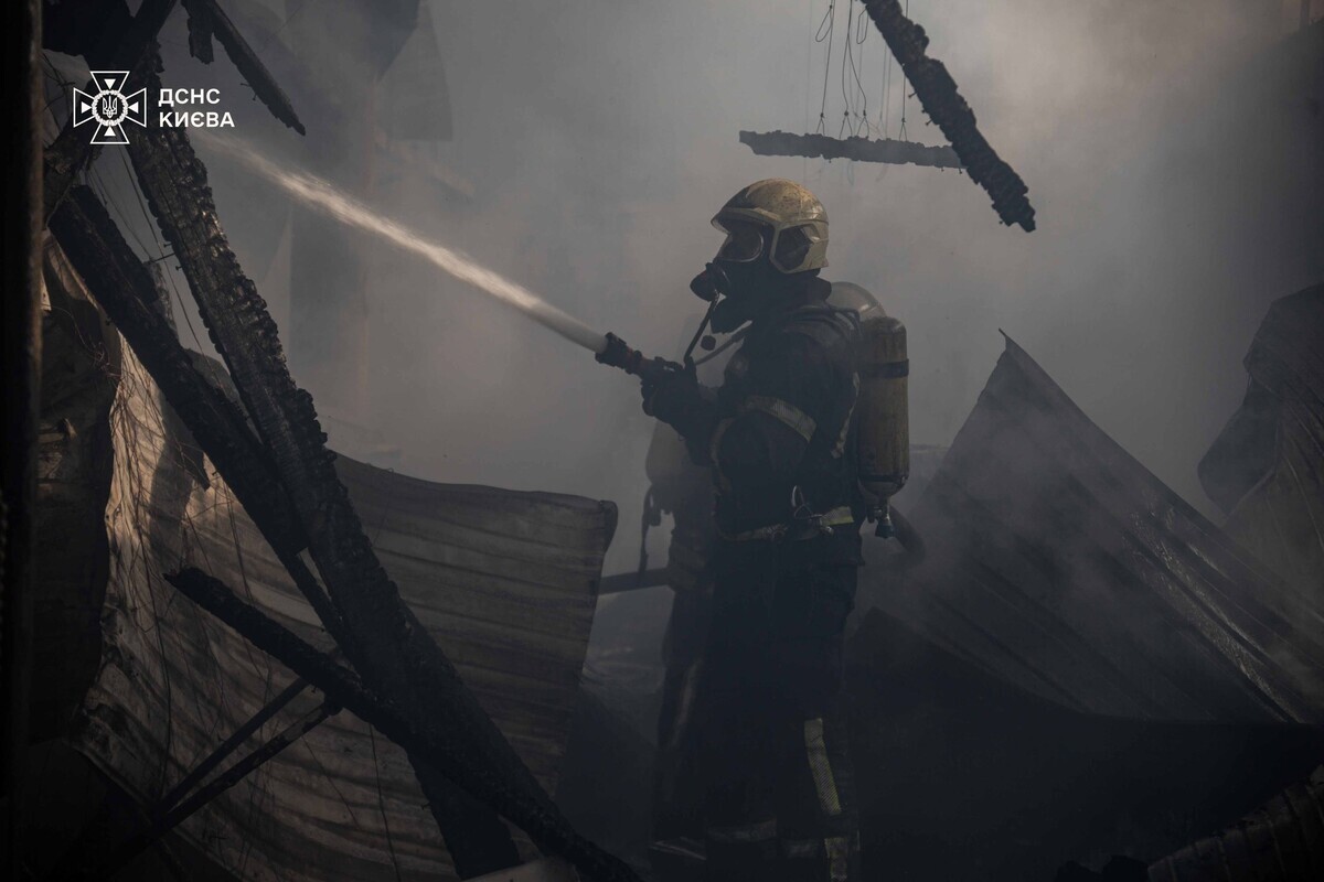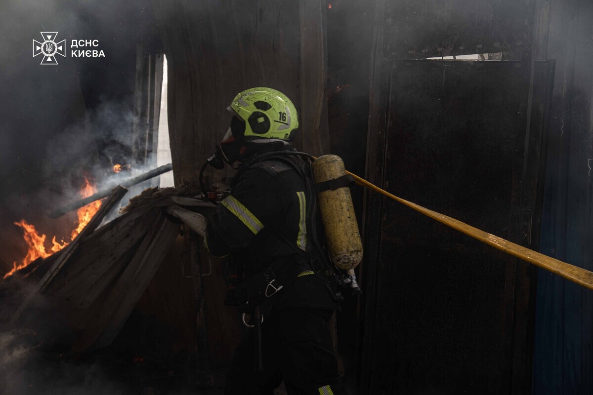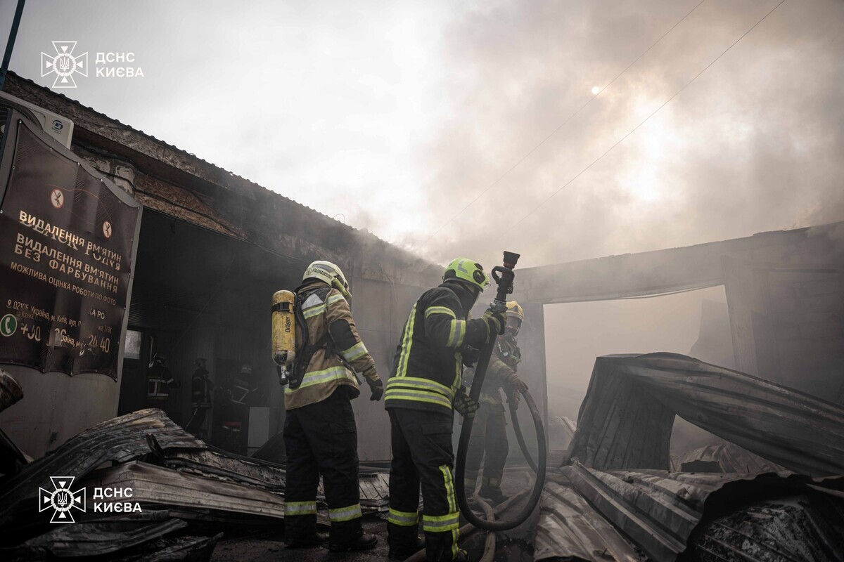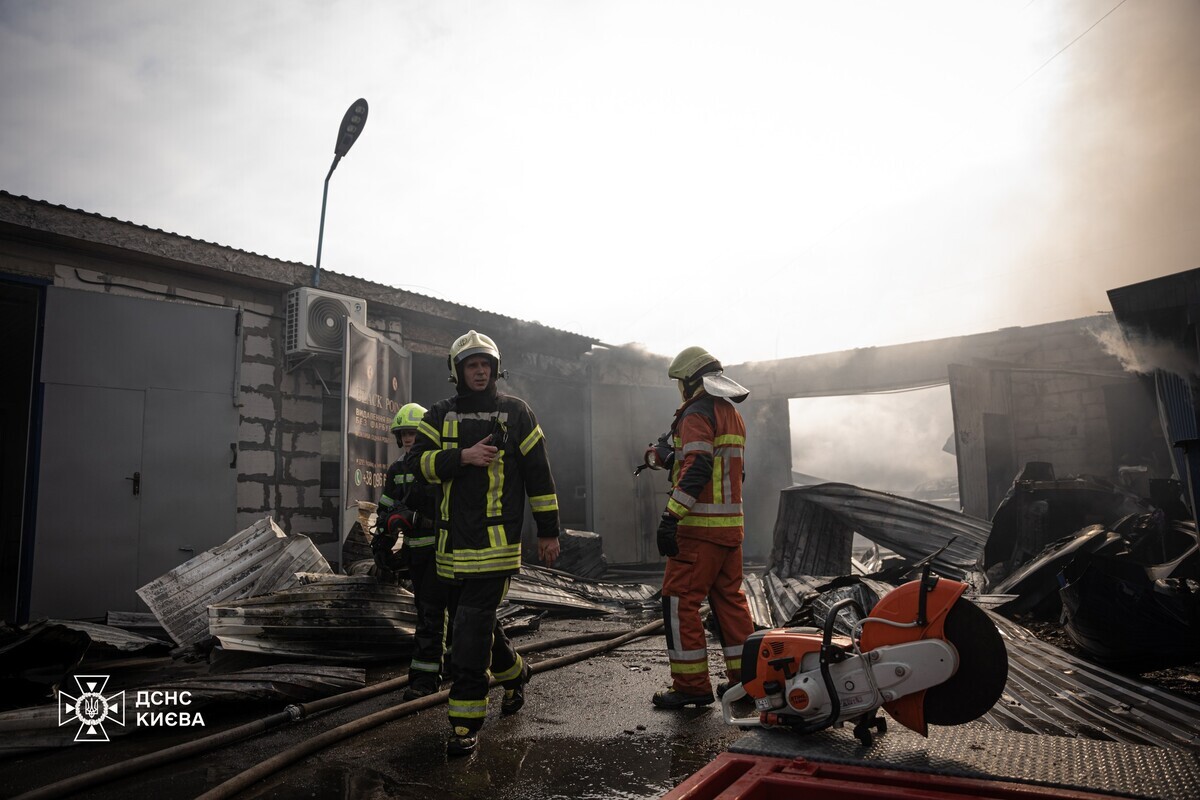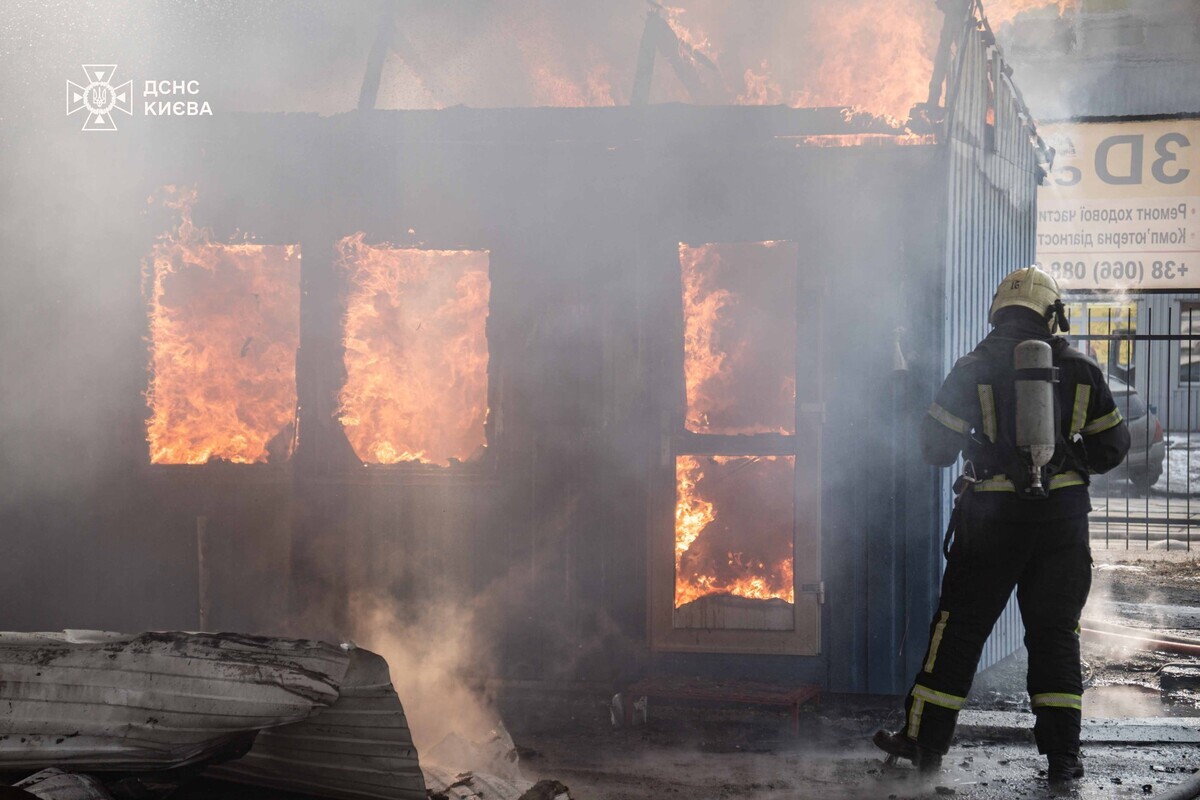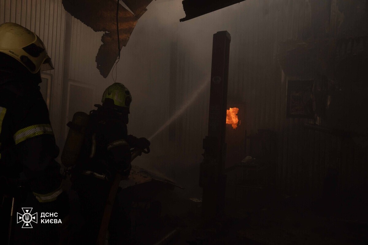 «Прибувши на місце, поліцейські встановили, що вогонь охопив одну з будівель станції технічного обслуговування й розповсюдився на сусідні приміщення, охопивши загальною площею близько 300 метрів», – повідомила поліція Києва.