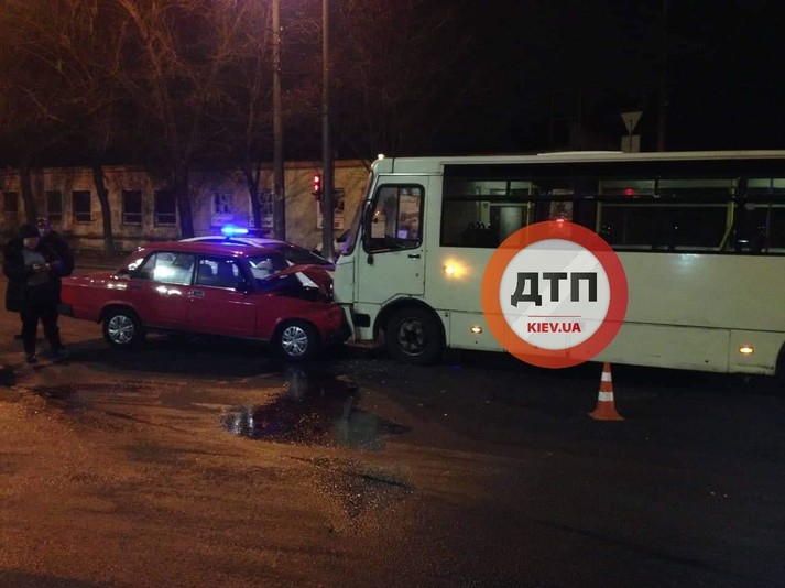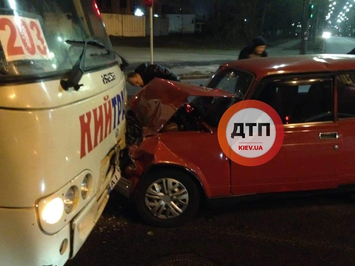 У Києві лоб в лоб зіткнулися ВАЗ і маршрутка з пасажирами (фото)