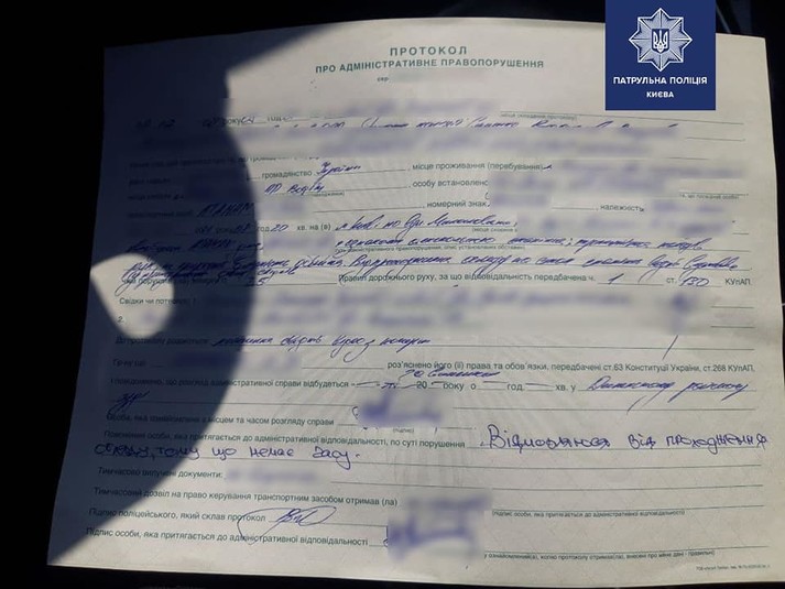 Водій відмовився пройти огляд на стан сп'яніння у встановленому законом порядку, мотивуючи це тим, що не хоче витрачати час.